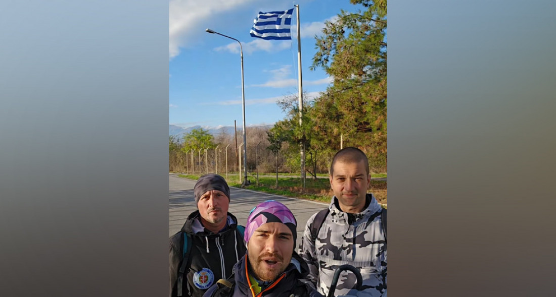 "Trojica pripadnika Ministarstva unutrašnjih poslova, Vladimir Penezić, Strahinja Bjelić i Marko Marinković, stigli su u Grčku. Nastavljaju peške ka manastiru Hilandar.
