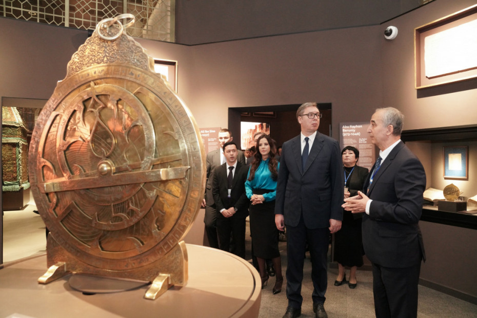 Supruga predsednika Republike Srbije Tamara Vučić, obišla je danas sa srpskom delegacijom predvođenom predsednikom Aleksandrom Vučićem, Centar za islamsku civilizaciju u Taškentu.