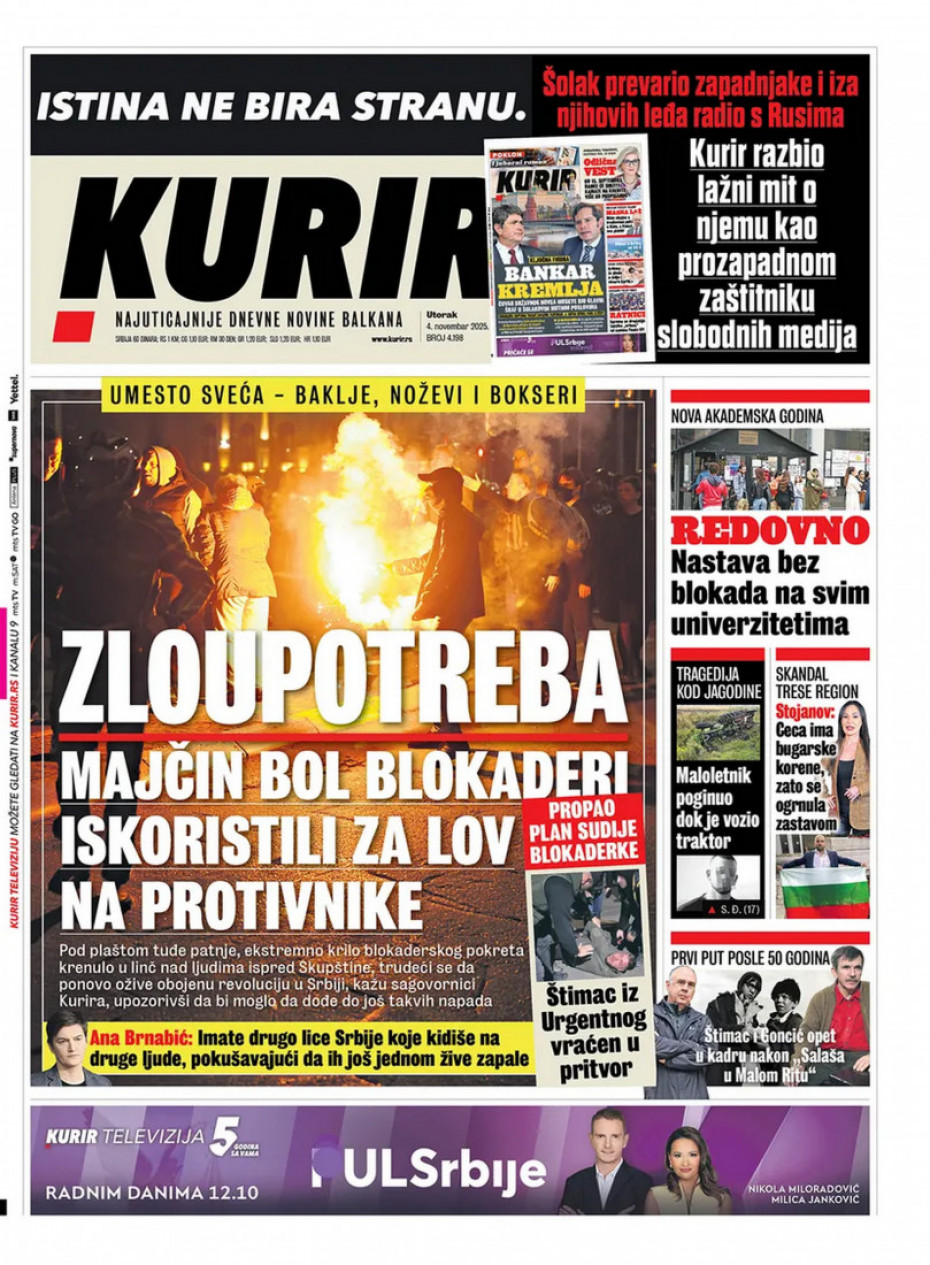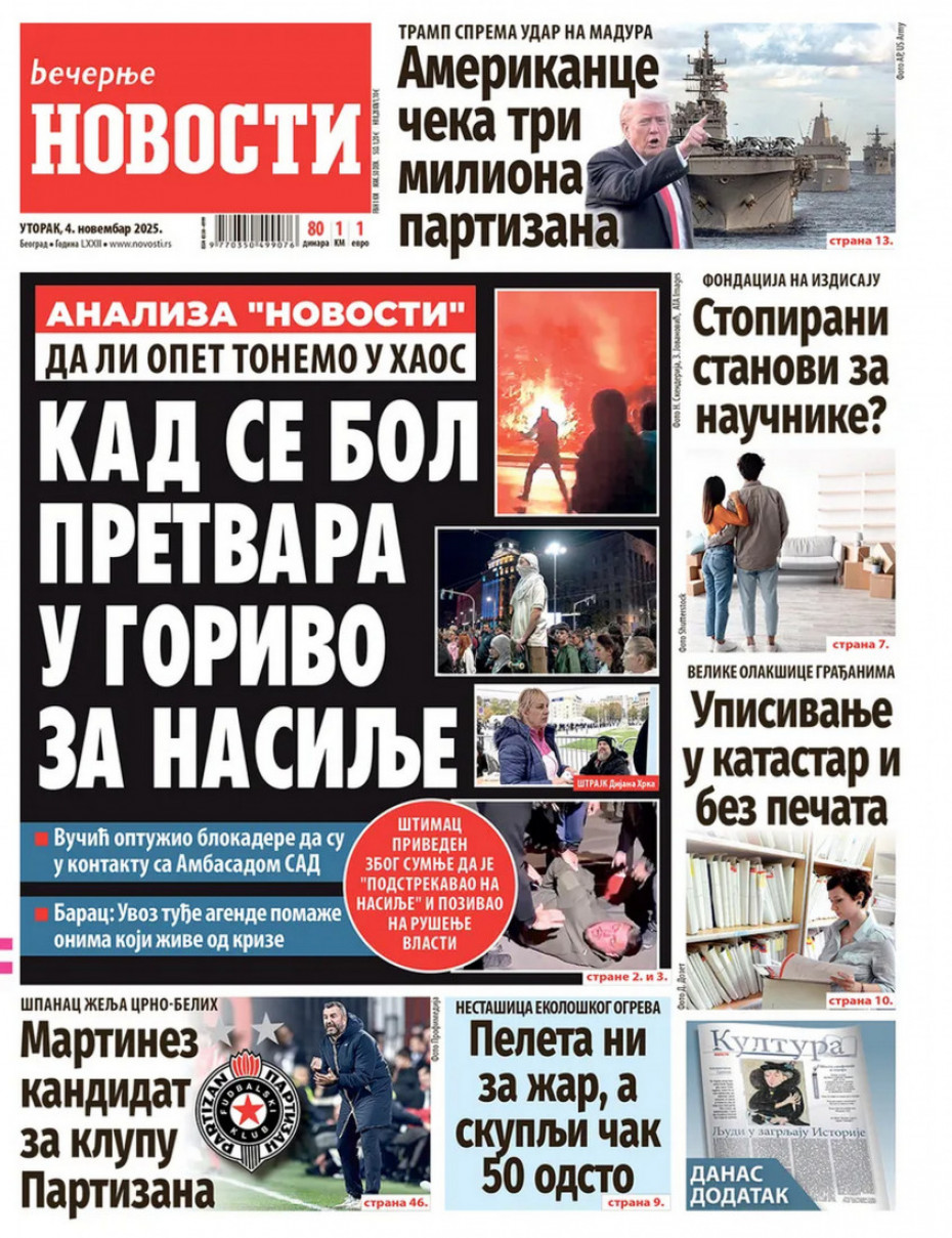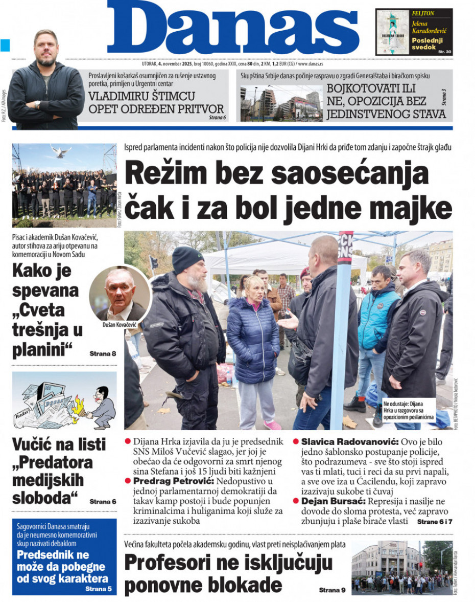 Naslovne strane dnevne štampe za utorak, 4. novembar