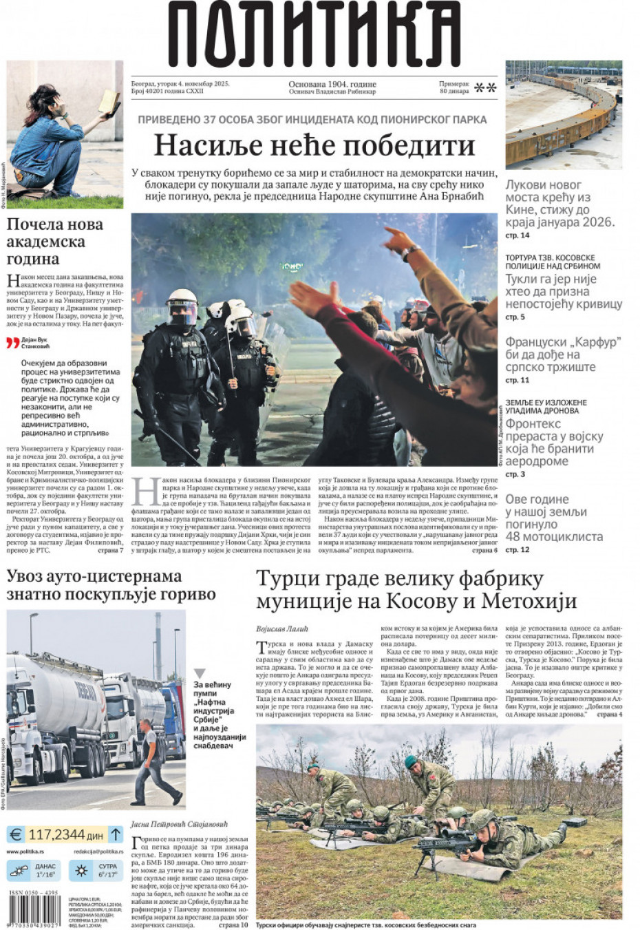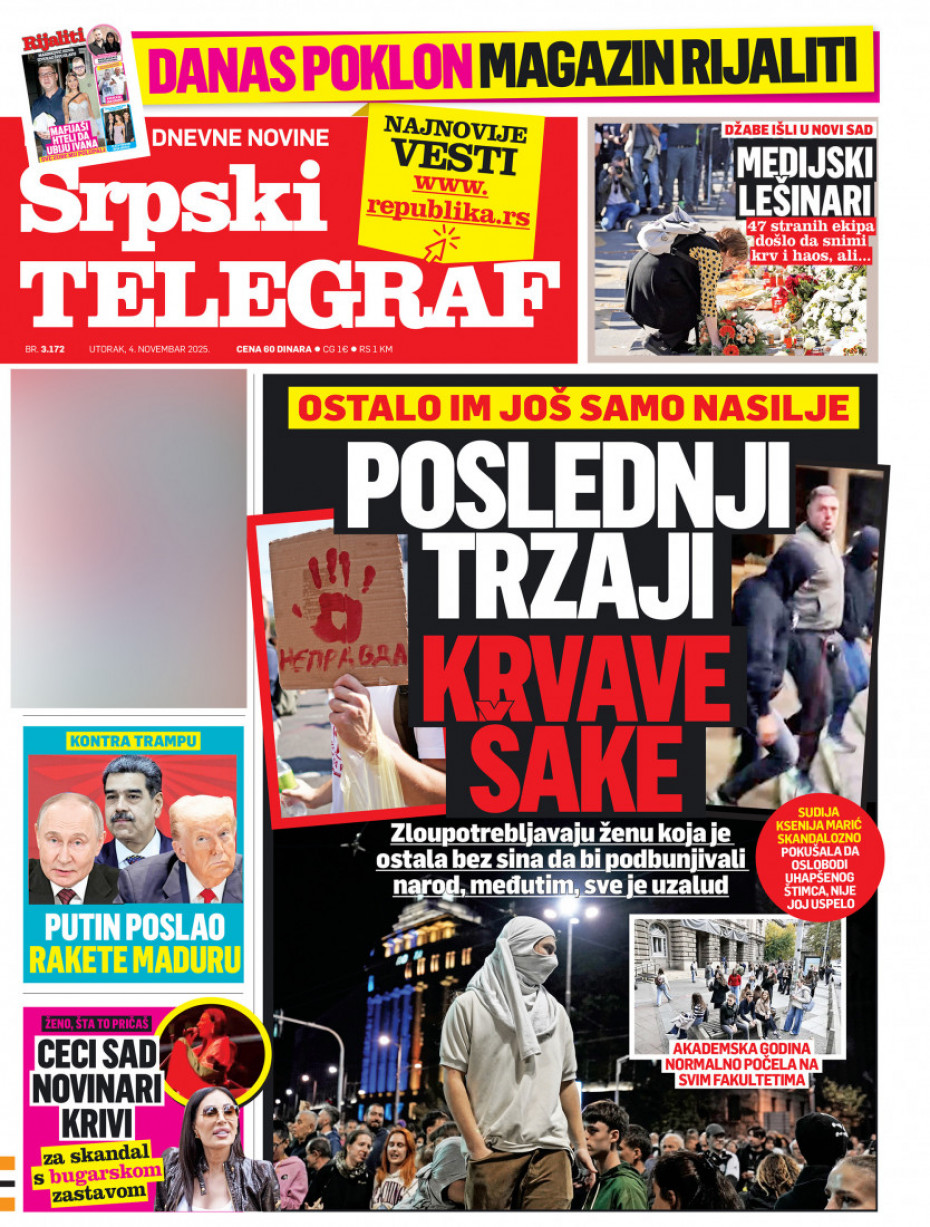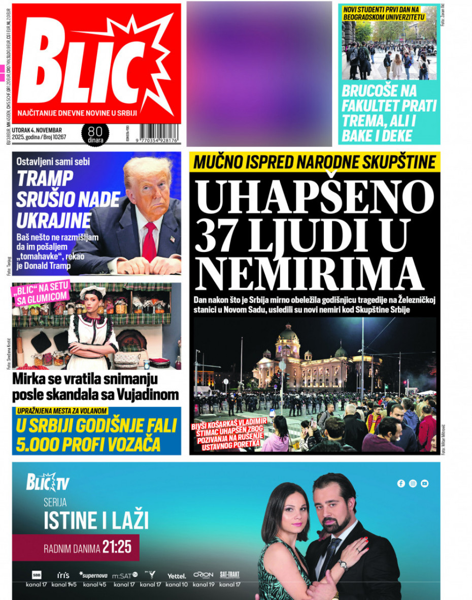Naslovne strane dnevne štampe za utorak, 4. novembar