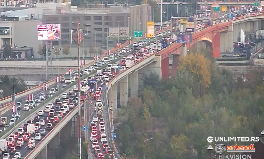 Na Gazeli je stvorena kolona vozila u oba pravca, dok saobraćaj naročito sporo teče iz smera Novog Beograda prema Autokomandi.