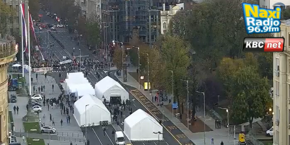 Blokirana je Takovska ulica u jednom smeru, kao i raskrsnica Takovske i Bulevara kralja Aleksandra gde se nalazi šator u kojem Dijana Hrka, majka Stefana Hrke poginulog u padu nadstrešice u Novom Sadu, štrajkuje glađu.