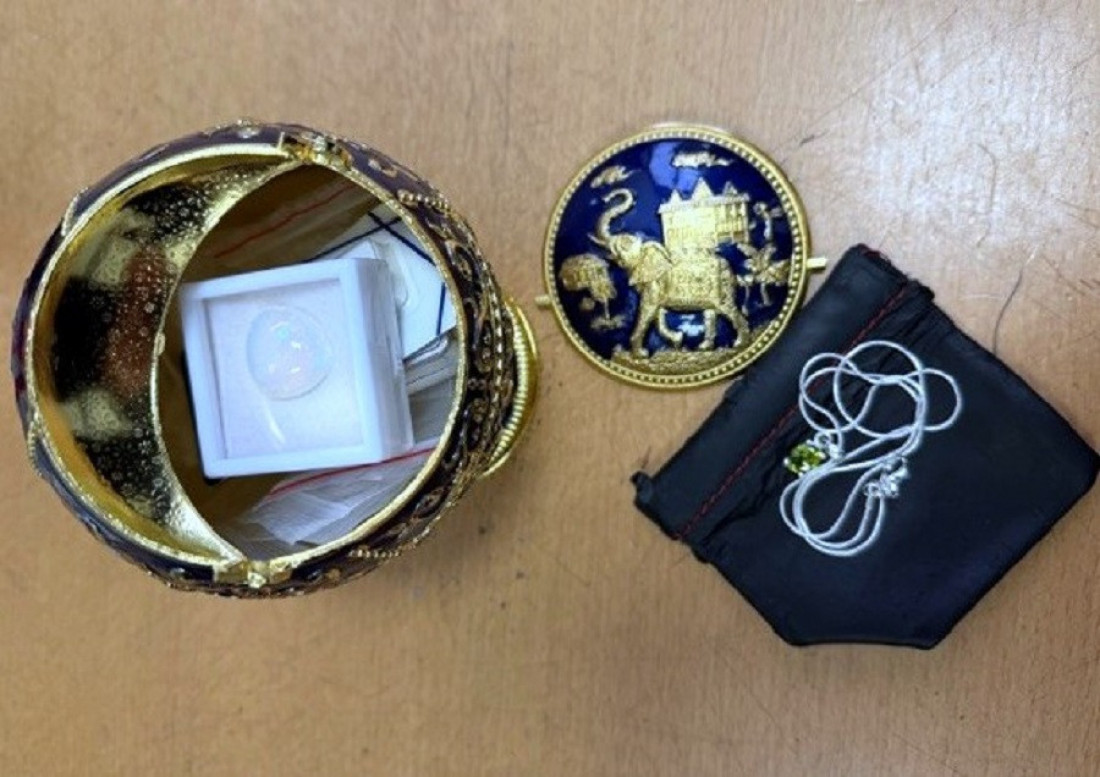 "Detaljnom kontrolom prtljaga otkriveno je da se među njegovim ličnim stvarima krije jedna orijentalna kutijica sa 13 poludragih kamenčića među kojima su se našli: topaz, ametist, tanzanit, spinel, akvamarin, rodolit, opal i drugi", navodi se u saopštenju.