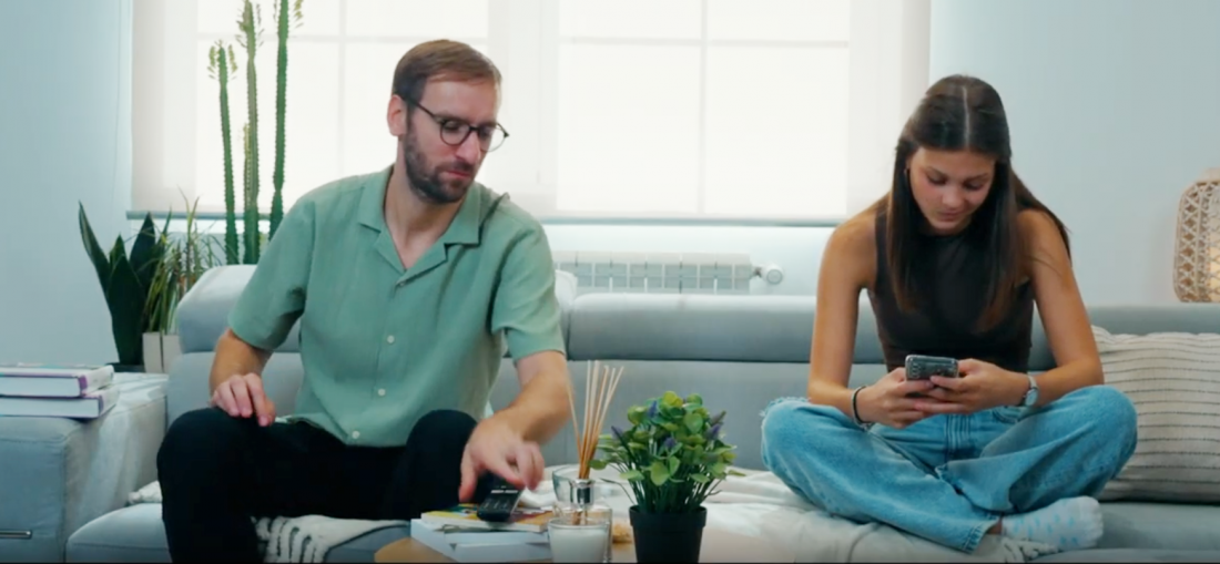 Kroz svakodnevnu, dobro poznatu scenu, gde roditelj i dete sede zajedno na kauču, isvako gleda u svoj ekran, video osvetljava koliko je lako propustiti ono što se zaista dešava.