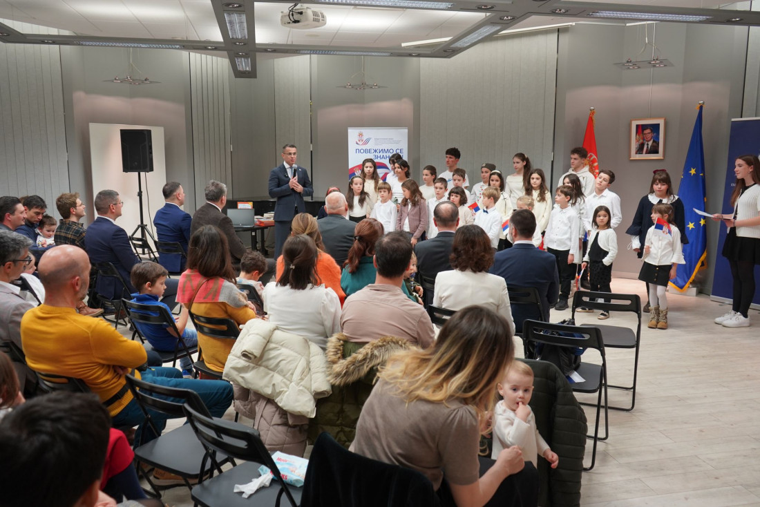 Kako projekat "Povežimo se znanjem" živi kroz srpsku decu u dijaspori, kroz srpske škole koje čuvaju nacionalni identitet i pripadnost srpskom narodu, Milićević je zahvalio deci i roditeljima jer, kako je naveo, uče nas ljubavlju prema otadžbini, svojim prisustvom jačaju neraskidivi srpski lanac zajedništva, istorije, kulture, tradicije, ali, čine i most ka budućnosti.