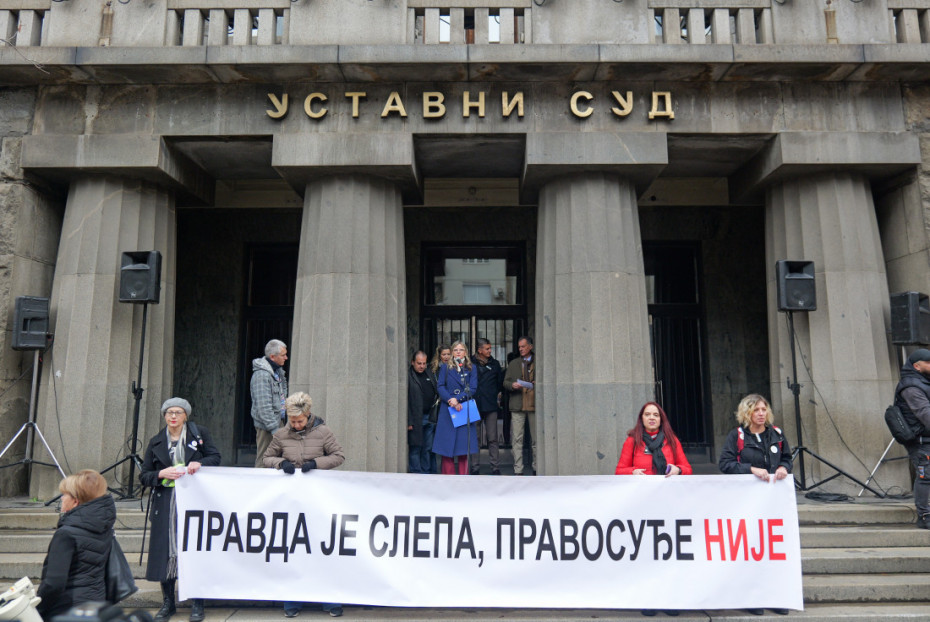 Grupa sudija, tužilaca iz cele Srbije okupila se danas ispred Ustavnog suda na protestu protiv političkih pritisaka na pravosuđe.