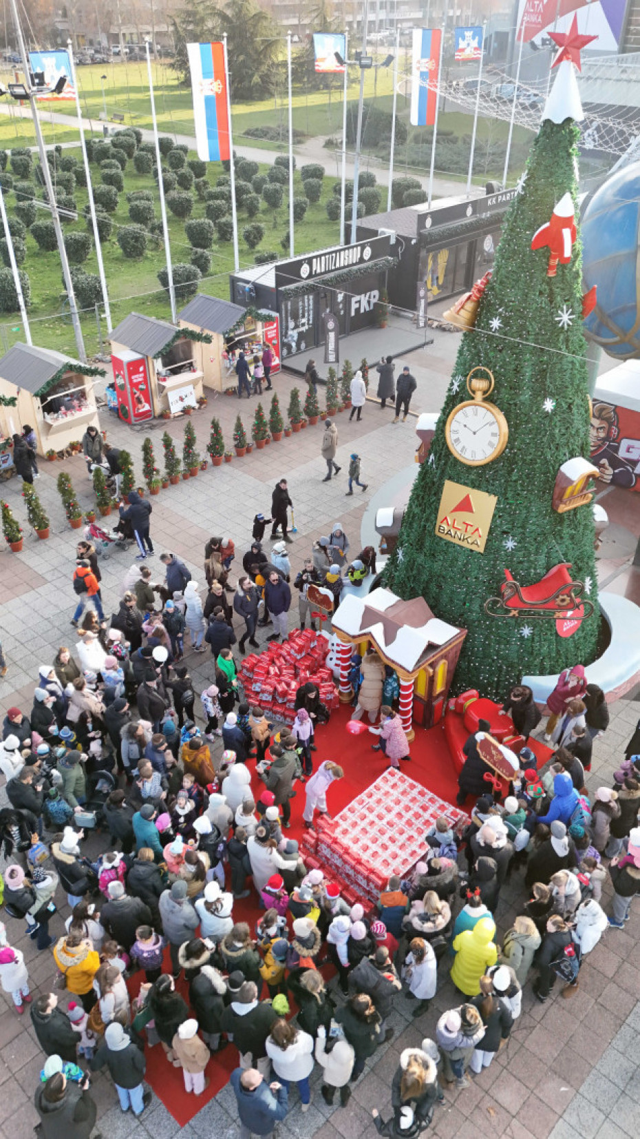 Poseban praznični trenutak obeležila je poseta Deda Mraza, koji je mališanima doneo osmeh i sreću, darujući im pažljivo pripremljene paketiće. Čak 500 novogodišnjih poklona podeljeno je najmlađima. Njegovo prisustvo unelo je još više topline i čarolije u "Čarobnu zimu". Posetioci su imali priliku da uživaju i u besplatnim vožnjama na panoramskom točku. To je još jedan znak pažnje ALTA banke, koja širi radost, donosi prazničnu toplinu i neguje duh zajedništva.