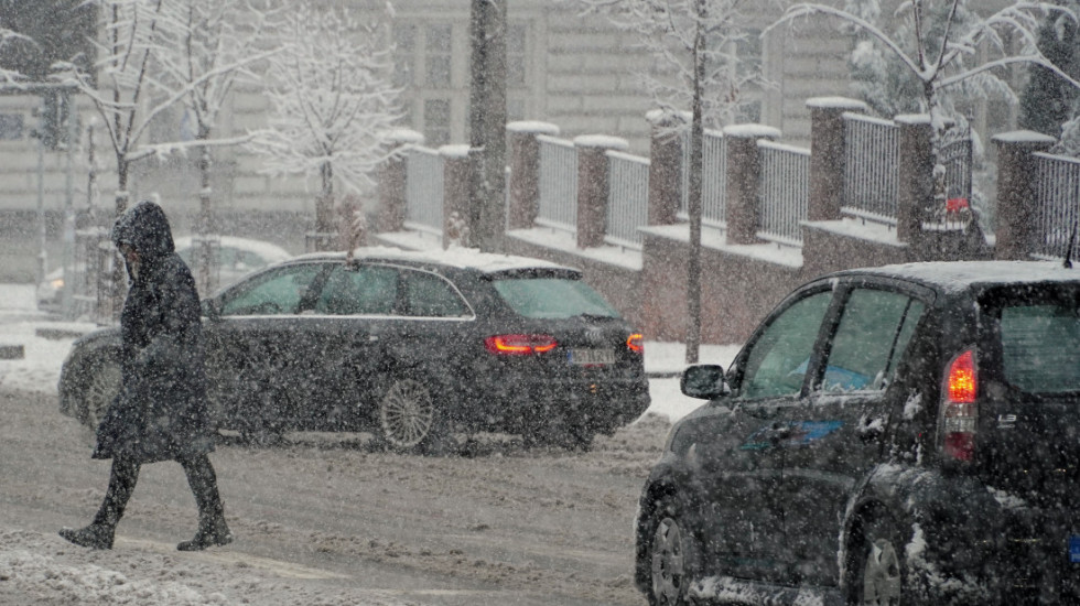 U Beogradu je jak sneg izazvao zastoje u saobraćaju, a pojedini letovi sa aerodroma "Nikola Tesla" su otkazani.
