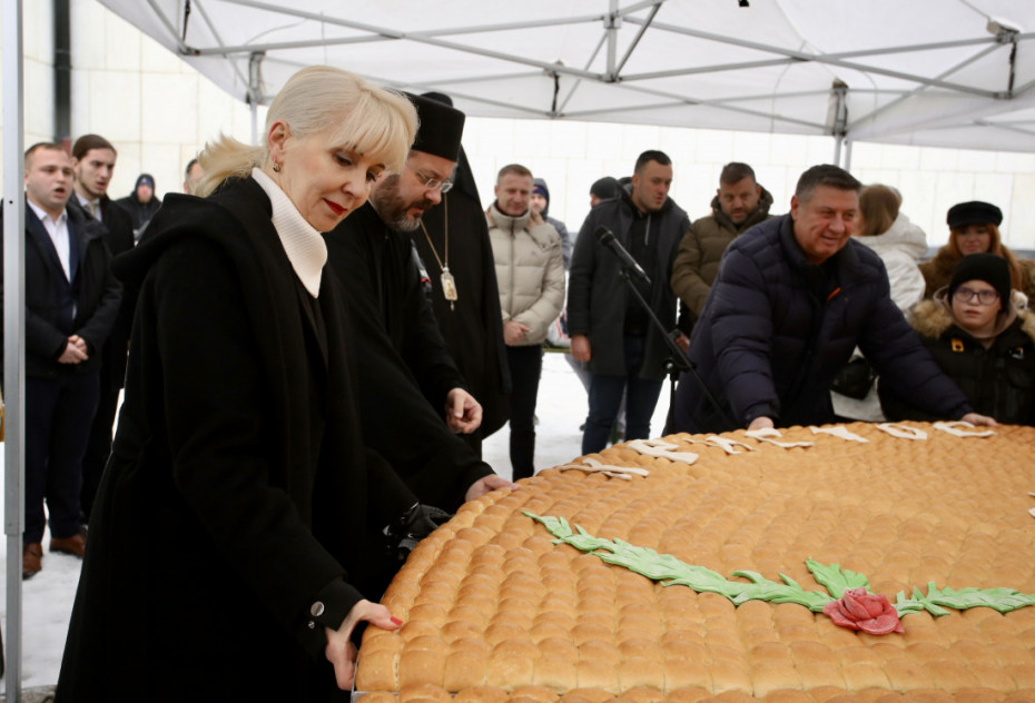 Veliki broj građana prisustvovao lomljenju česnice ispred Hrama Svetog Save