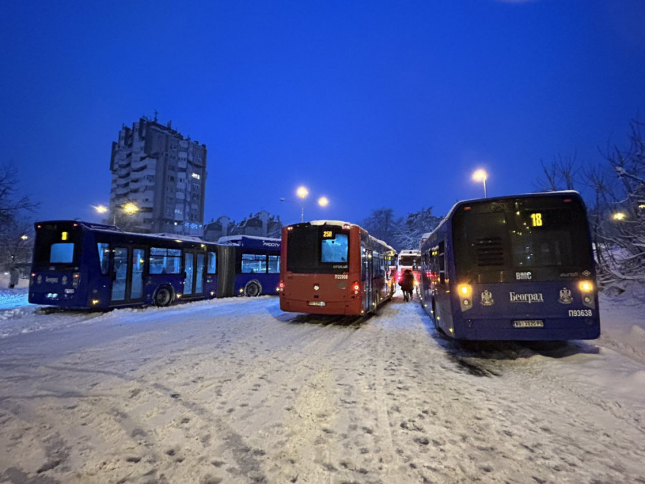 Na beogradskim ulicama nalazi se ukupno 1.445 vozila za prevoz putnika, a zbog snega koji od noćas pada u prestonici, nekoliko linija vozi izmenjenom trasom ili je izmešteno sa svoje rute, rečeno je Tanjugu u Gradskom saobraćajnom preduzeću.