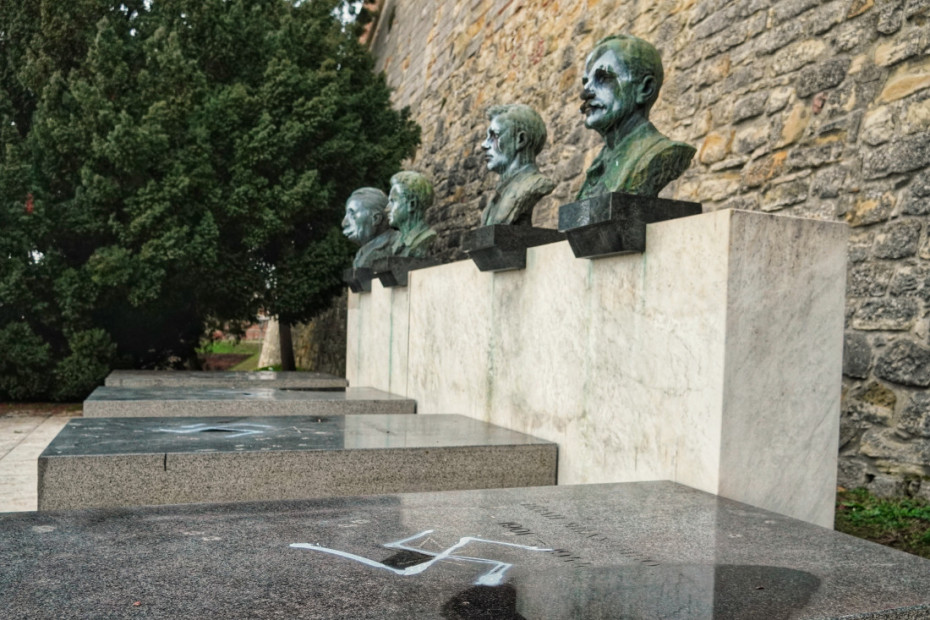 Nepoznati počinioci su u noći između subote i nedelje belom bojom nacrtali kukaste krstove na bistama narodnih heroja, kao i na mermernim pločama, odnosno njihovim grobnicama.