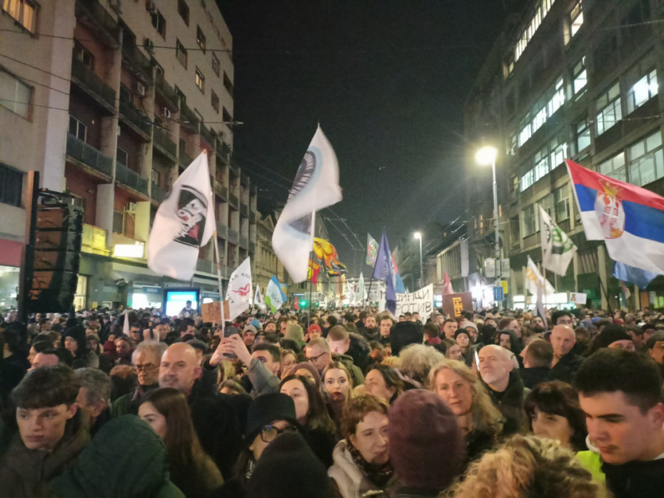 Prema rečima reportera Euronews Srbija, rektor beogradskog univerziteta Vladan Đokić obratio se prisutnim učenicima, studentima i građanima koji ih podržavaju.