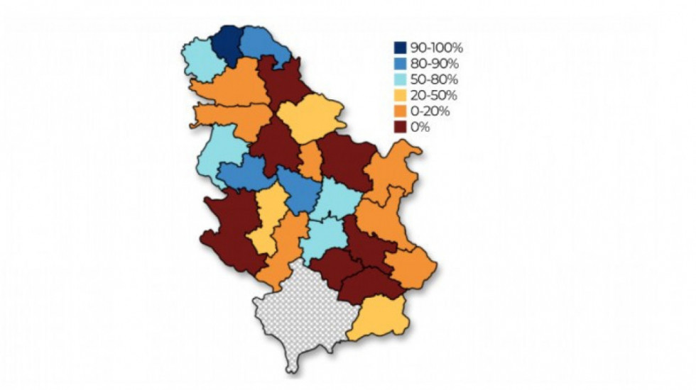 Veći obuhvat od 50 odsto beleže se samo na severu Vojvodine i u nekim delovima zapadne i centralne Srbije – ali nažalost, ni ova mapa ne nudi potpunu sliku lošeg stanja tretmana otpadnih voda u Srbiji, piše portal.