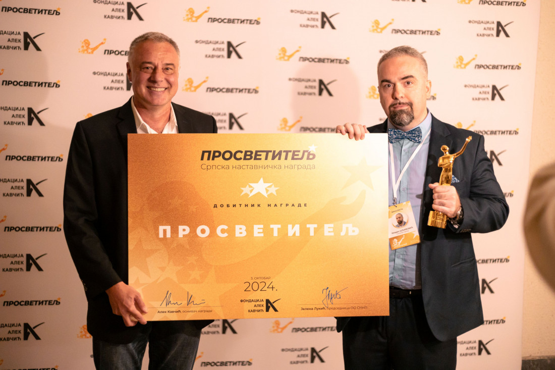 "Nagrada ‘Prosvetitelj’ postoji zato što verujemo da društvo mora da prepoznaje i ceni prosvetne radnike, jer tako ulaže u sopstvenu budućnost. Naš cilj je da istaknemo one koji svakodnevno, često tiho i daleko od reflektora, menjaju živote dece i mladih, ali sa velikim i trajnim uticajem", poručio je profesor Aleksandar Kavčić, osnivač Fondacije.