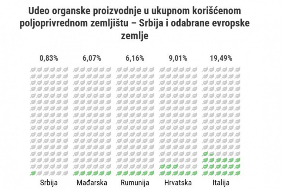 Ali u drugim zemljama kako regiona, tako i Evrope, udeo organske proizvodnje je daleko veći – a u zemljama kao što je Italija gotovo dostiže i 20 odsto.