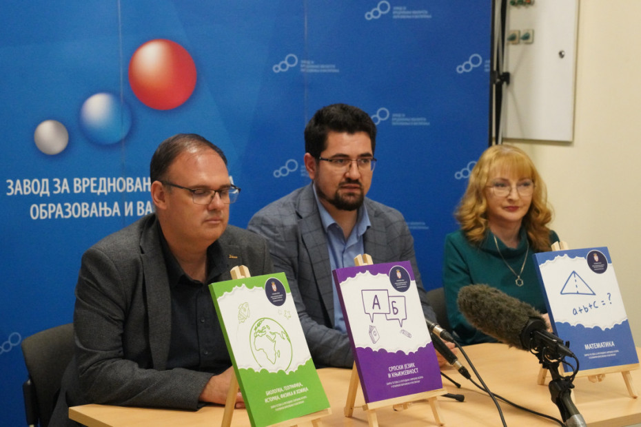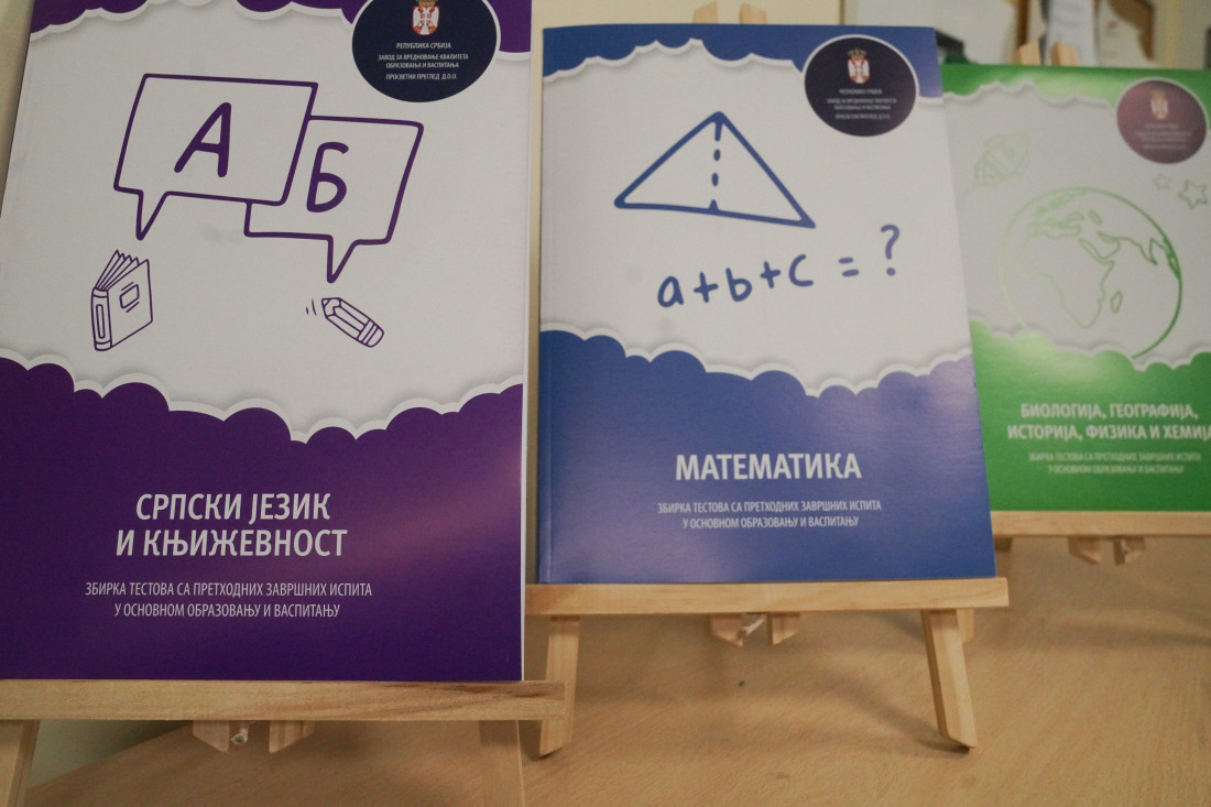 Zavod za vrednovanje obrazovanja i vaspitanja i Prosvetni pregled predstavili su danas tri zbirke testova za završni ispit od prethodnih godina iz srpskog jezika i književnosti, matematike i biologije, geografije, istorije, fizike i hemije, a koje učenicima, pored zbirki zadataka, treba da pomognu da se što bolje pripreme i poboljšaju rezultate na maloj maturi.