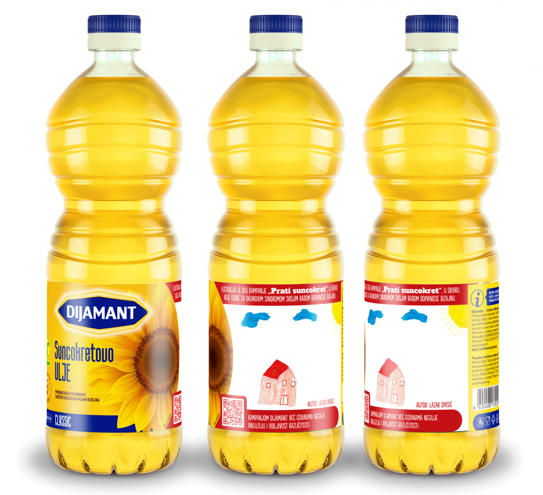 Čak 2,7 miliona boca ulja sa novim etiketama, ukrašenim crtežima članova Saveza, dostupno je na policama širom Srbije - noseći poruku o važnosti inkluzije, podrške i zajedništva. Autori čiji se radovi nalaze na etiketama su Igor Seged iz Novog Sada, Lazar Spasić i Nikola Stankić iz Kragujevca, Nikola Trenkoski iz Beograda i Nikola Popović iz Kaća.