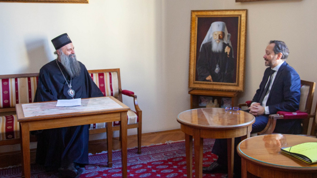 Patrijarh srpski Porfirije, zajedno sa članovima Svetog arhijerejskog Sinoda - episkopima sremskim Vasilijem, kruševačkim Davidom i marčanskim Savom, šefom kabineta patrijarha srpskog, danas je razgovarao sa šefom Delegacije EU u Srbiji Emanueleom Žiofreom o krizi nastaloj zbog sukoba u Ukrajini.