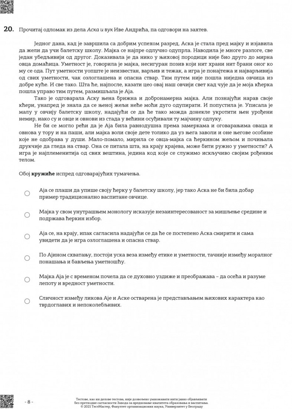 Probni test iz srpskog jezika, osmaci su radili drugog dana probe male mature. Euronews Srbija objavljuje zadatke i rešenja probnog testa iz srpskog jezika.
