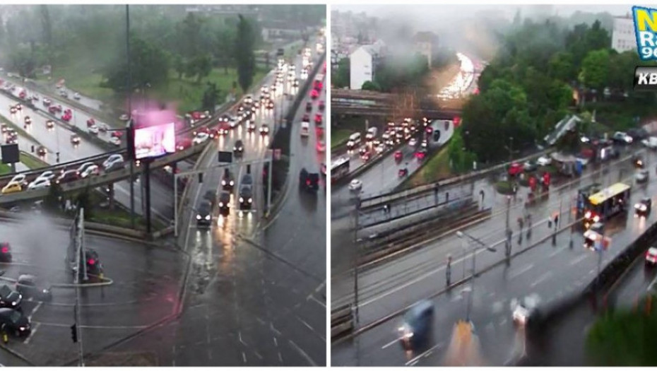 Jak pljusak spustio se na Beograd. To je dodatno povećalo popodnevne saobraćajne gužve po gradu, a najviše automobila ima na Autokomandi. Zbog kiše, velike su gužve na stajalištima i u vozilima javnog gradskog prevoza.