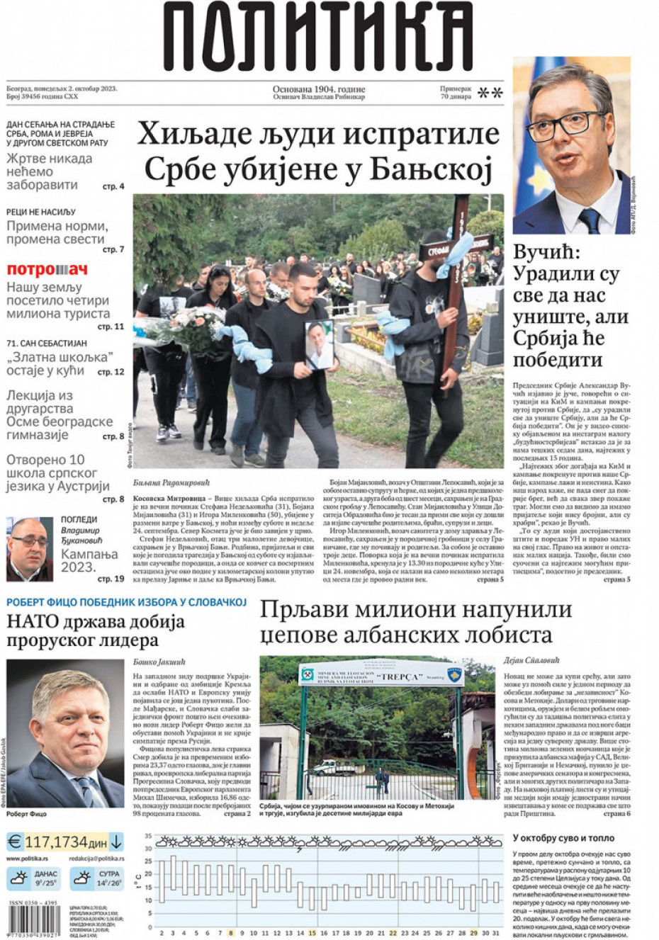 Naslovne strane dnevne štampe za ponedeljak, 2. oktobar