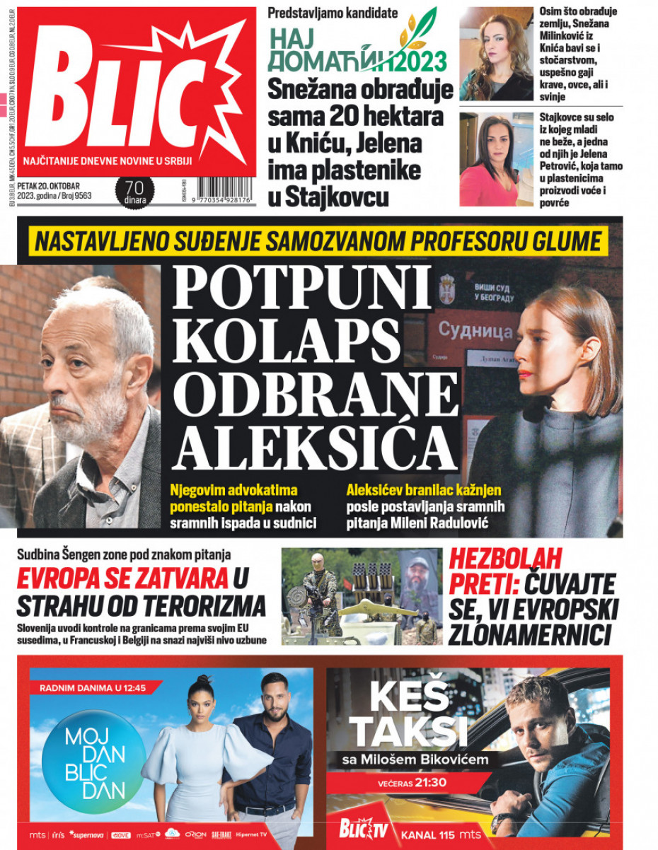 Pogledajte šta na naslovnim stranama donose dnevne novine u Srbiji u izdanju za petak, 20. oktobar.