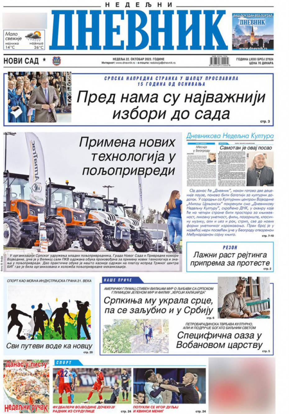 Pogledajte šta na naslovnim stranama donose dnevne novine u Srbiji u izdanju za nedelju, 22. oktobar.