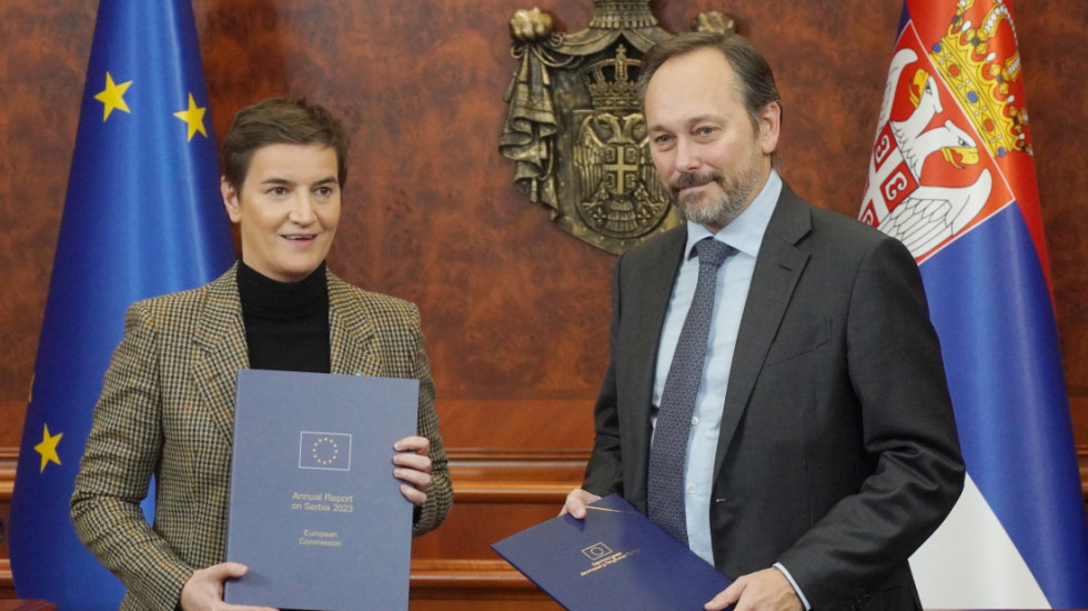 Šef delegacije EU u Srbiji predao premijerki Izveštaj EK, Brnabić: "Ne postoji oblast u kojoj smo nazadovali"