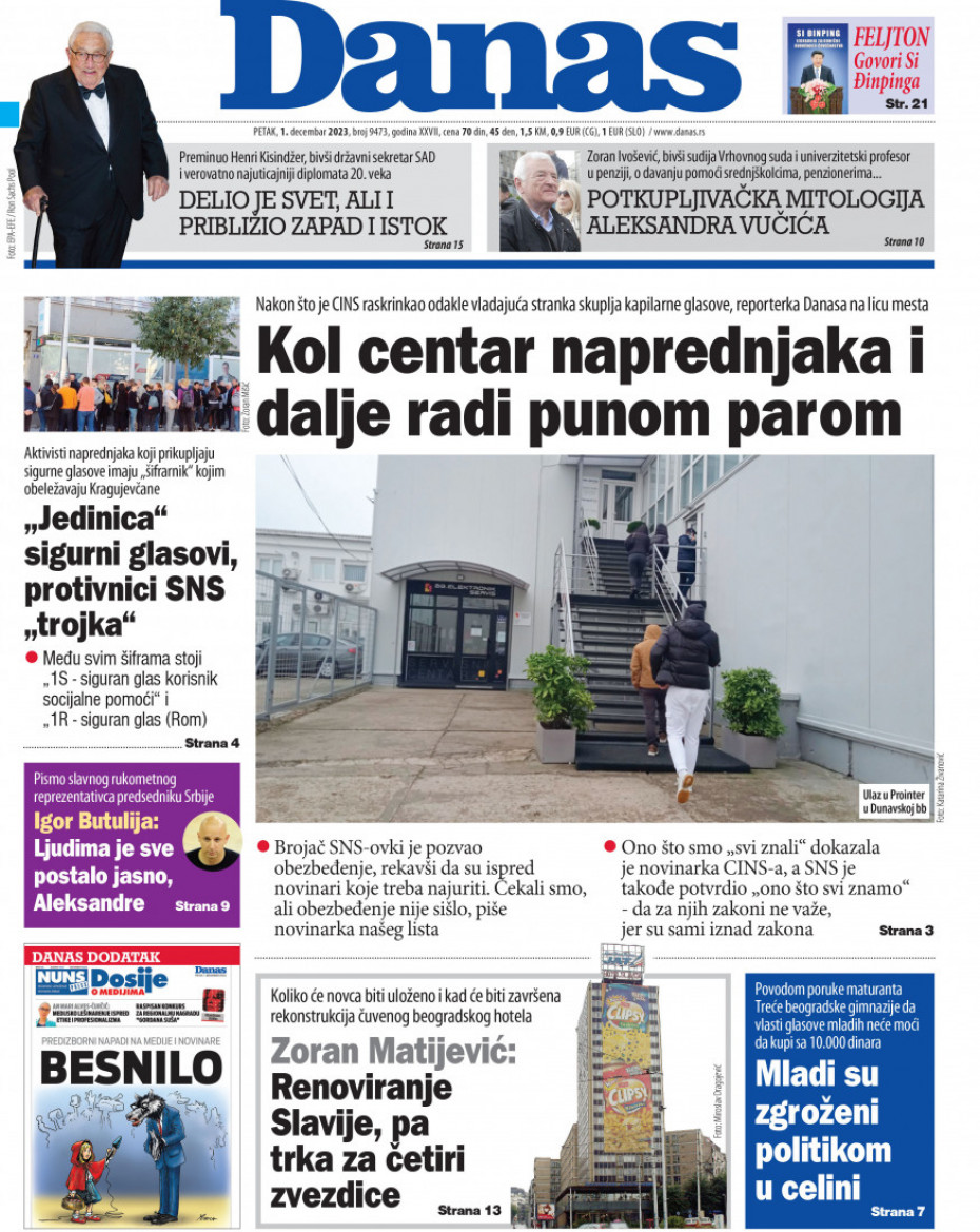 Naslovna Srbija Politika Politika Naslovne strane dnevne štampe za petak, 1. decembar Komentari Naslovne strane dnevne štampe za petak, 1. decembar - Copyright Promo Autor: Euronews Srbija 30/11/2023 - 20:31 Podeli veličina teksta Aa Aa Pogledajte šta na naslovnim stranama donose dnevne novine u Srbiji u izdanju za petak, 1. decembar. Promo Pogledaj galeriju Promo Pogledaj galeriju Promo Pogledaj galeriju Promo Pogledaj galeriju Promo Pogledaj galeriju Promo Pogledaj galeriju Promo Pogledaj galeriju Promo Pogledaj galeriju Promo Pogledaj galeriju Promo Pogledaj galeriju Više o... Naslovne strane Naslovnice Dnevne novine Dnevna štampa Top tagovi Euronews Montenegro Kosovo i Metohija Rat u Ukrajini Kriza na Bliskom istoku