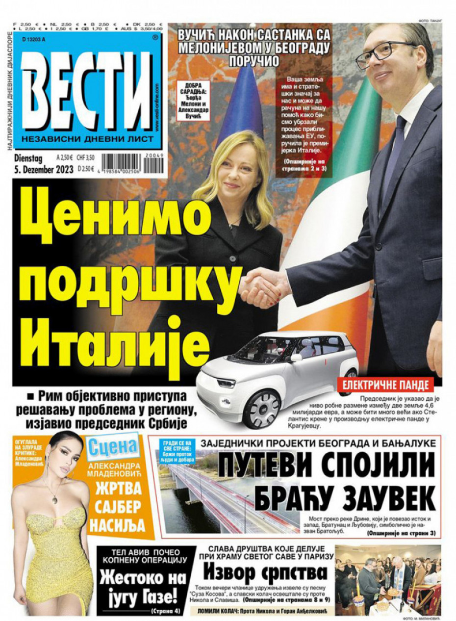 Naslovne strane dnevne štampe za utorak, 5. decembar