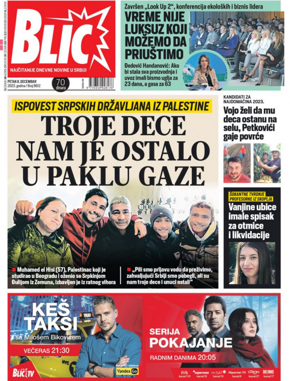 Naslovne strane dnevne štampe za petak, 8. decembar