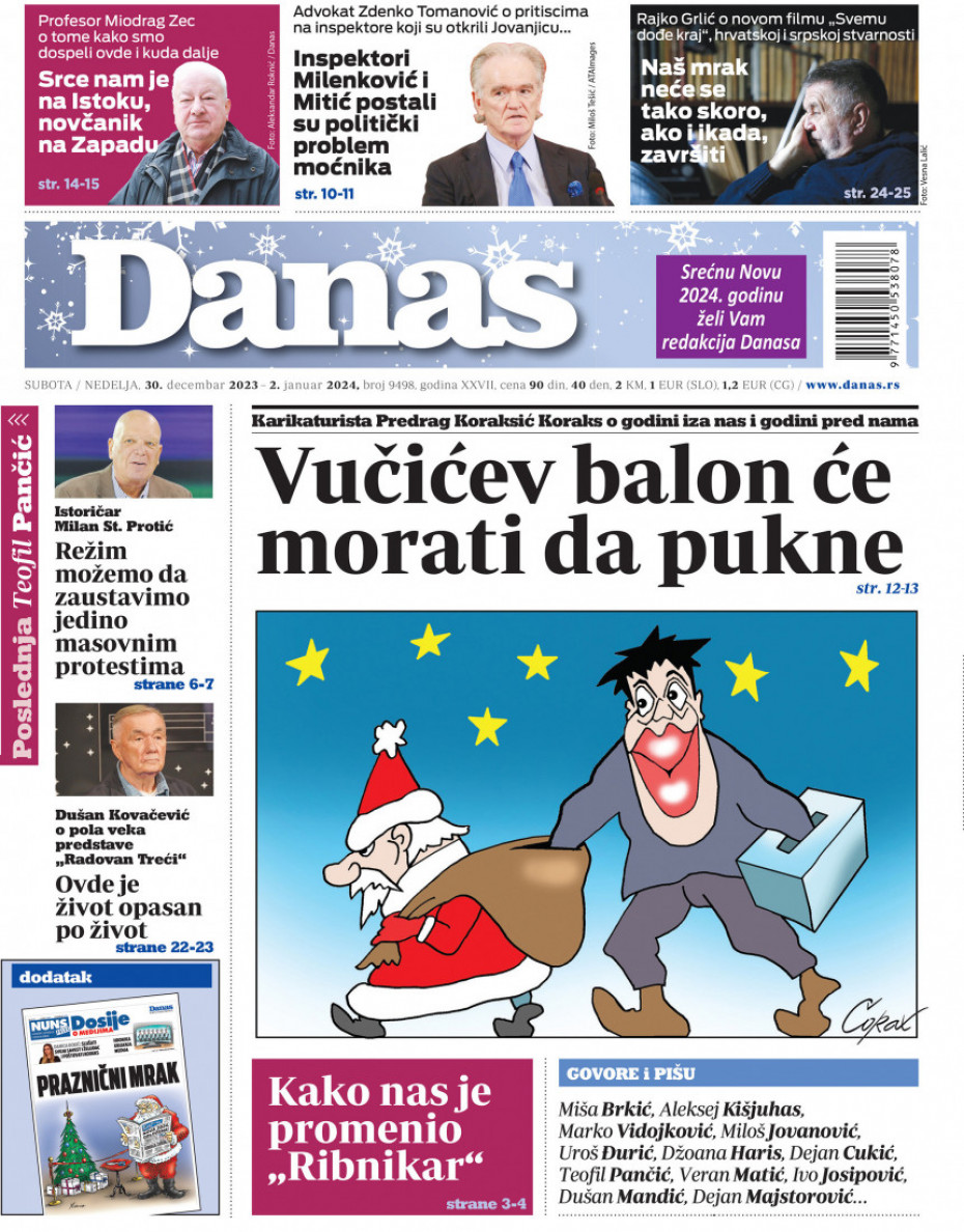 Naslovna Srbija Politika Politika Naslovne strane dnevne štampe za subotu, 30. decembar Komentari Profimedia, Logo - Copyright Profimedia, Logo Autor: Euronews Srbija 29/12/2023 - 22:27 Podeli veličina teksta Aa Aa Pogledajte šta na naslovnim stranama donose dnevne novine u Srbiji u izdanju za subotu, 30. decembar Promo Pogledaj galeriju Promo Pogledaj galeriju Promo Pogledaj galeriju Promo Pogledaj galeriju Promo Pogledaj galeriju Promo Pogledaj galeriju Promo Pogledaj galeriju Promo Pogledaj galeriju Promo Pogledaj galeriju Promo Pogledaj galeriju Više o... Naslovne strane Naslovnice Dnevne novine Dnevna štampa Top tagovi Euronews Montenegro Kosovo i Metohija Rat u Ukrajini Kriza na Bliskom istoku