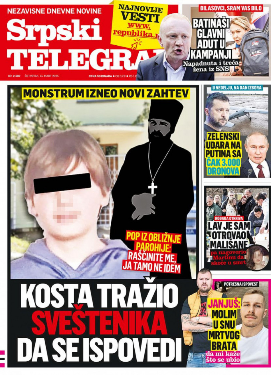 Pogledajte šta na naslovnim stranama donose dnevne novine u Srbiji u izdanju za četvrtak, 14. mart.