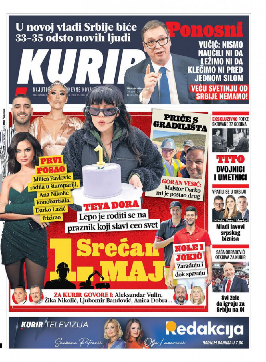 Pogledajte šta na naslovnim stranama donose dnevne novine u Srbiji u izdanju za sredu, 1.maj