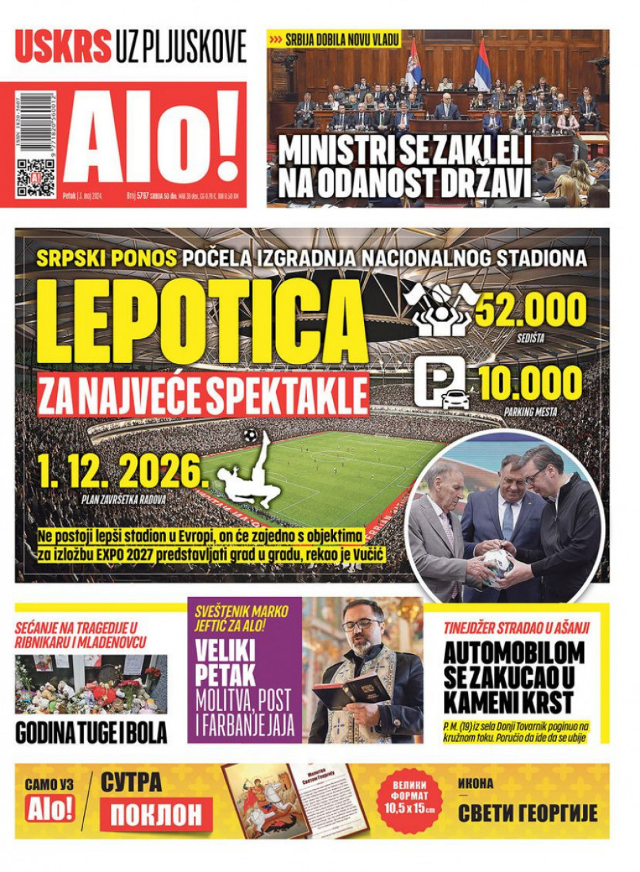 Pogledajte šta na naslovnim stranama donose dnevne novine u Srbiji u izdanju za petak, 3. maj