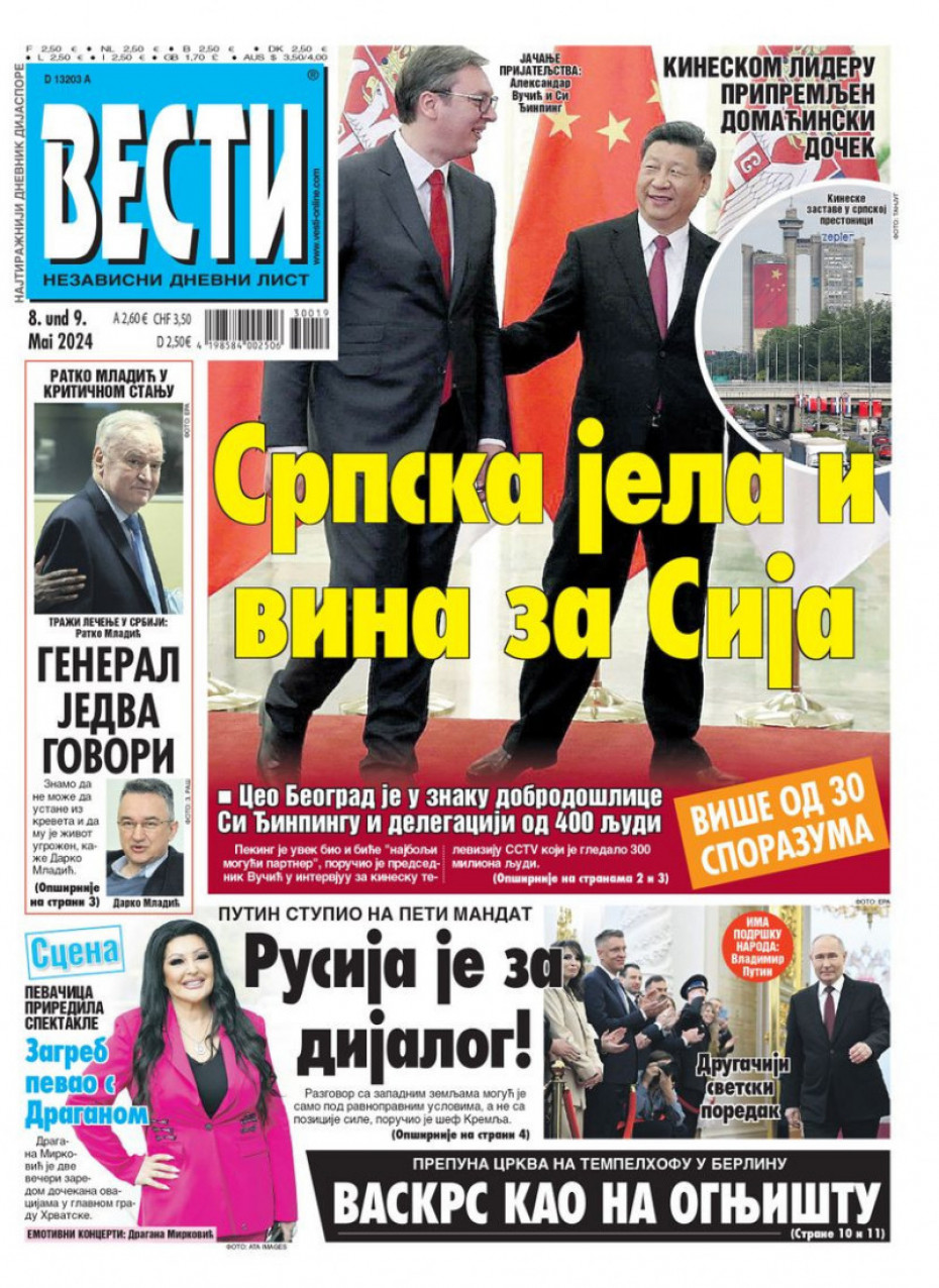 Pogledajte šta na naslovnim stranama donose dnevne novine u Srbiji u izdanju za četvrtak, 9. maj.