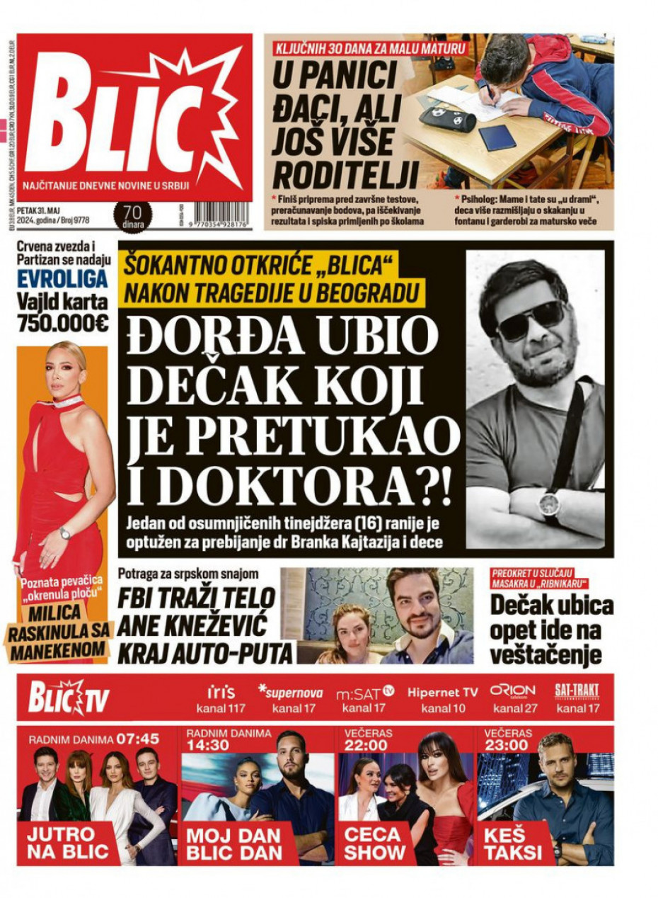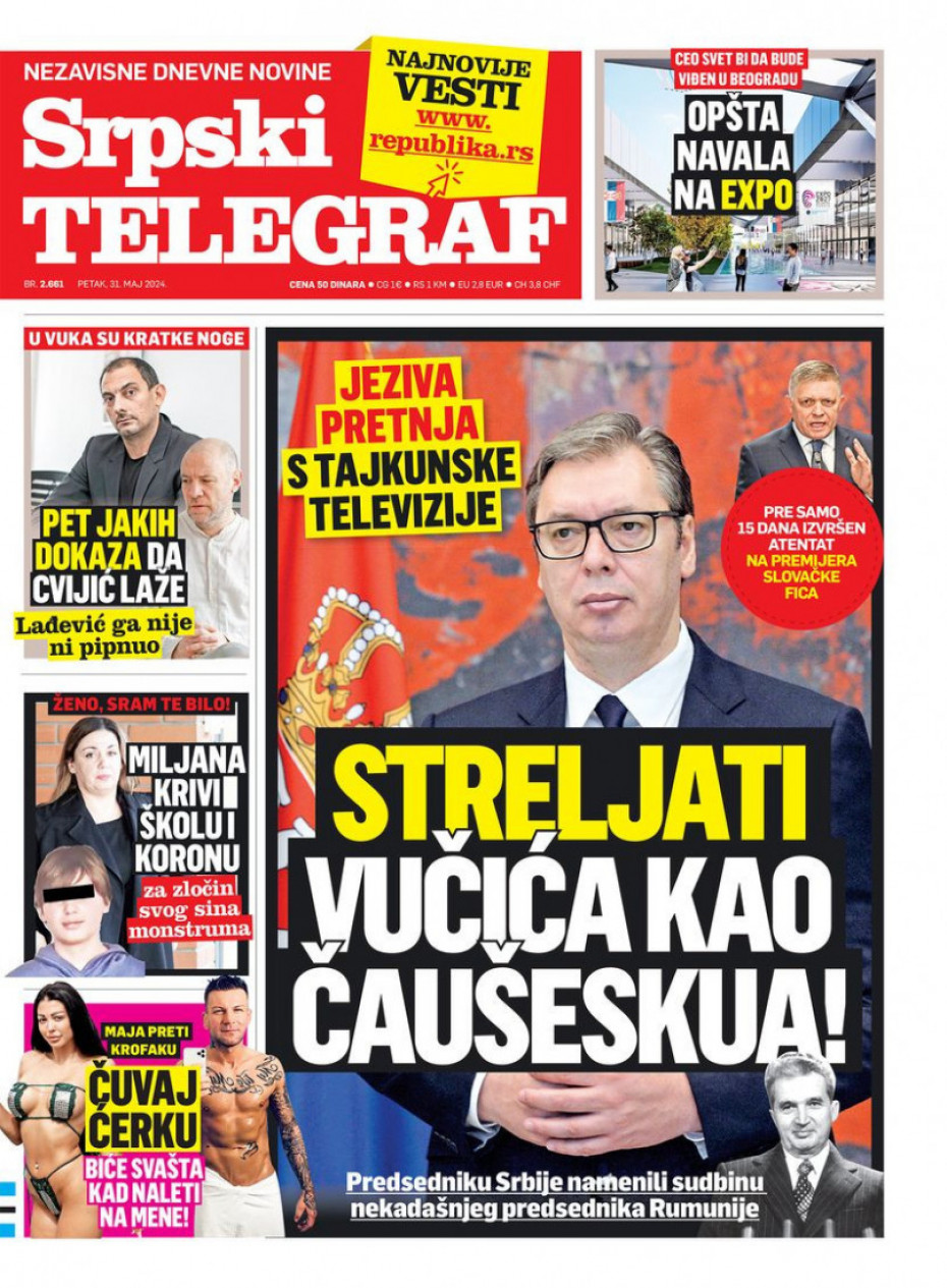 Pogledajte šta na naslovnim stranama donose dnevne novine u Srbiji u izdanju za petak, 31. maj