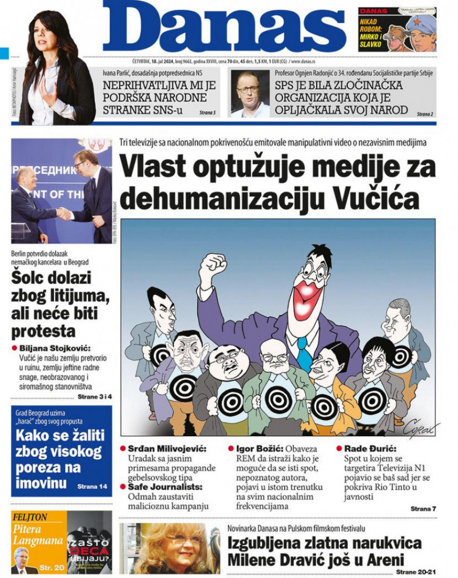 Naslovne strane dnevne štampe za četvrtak, 18. jul