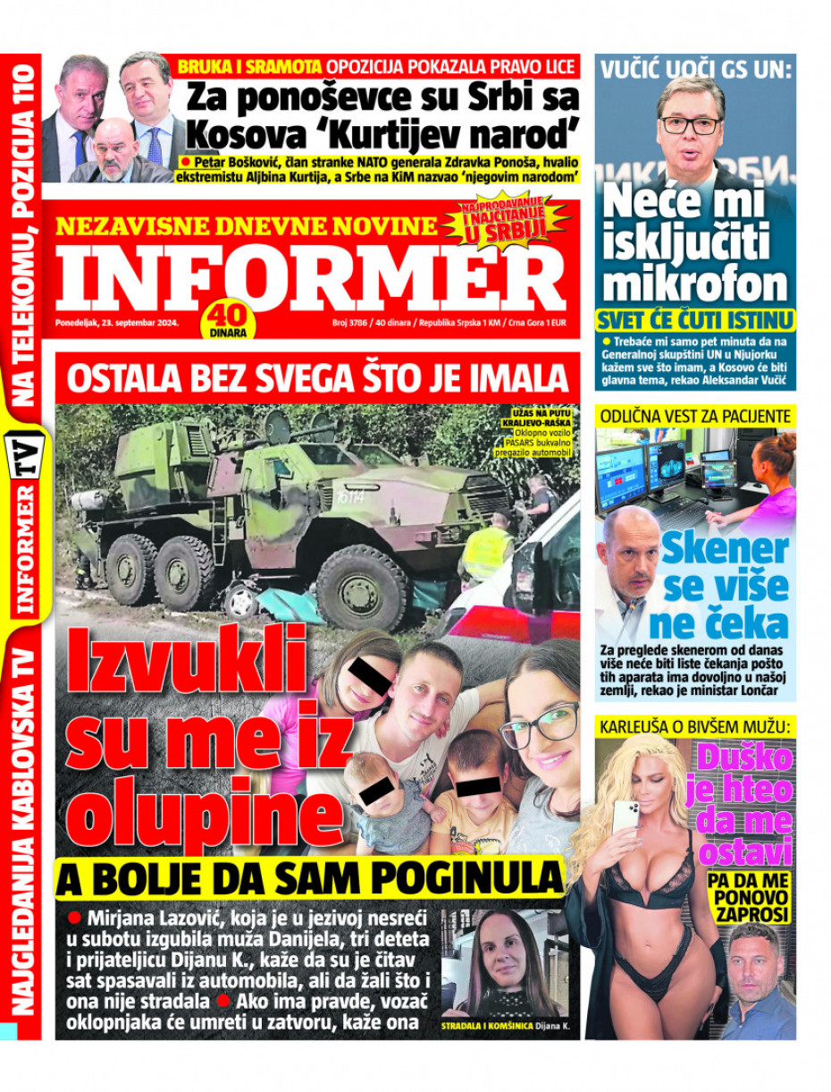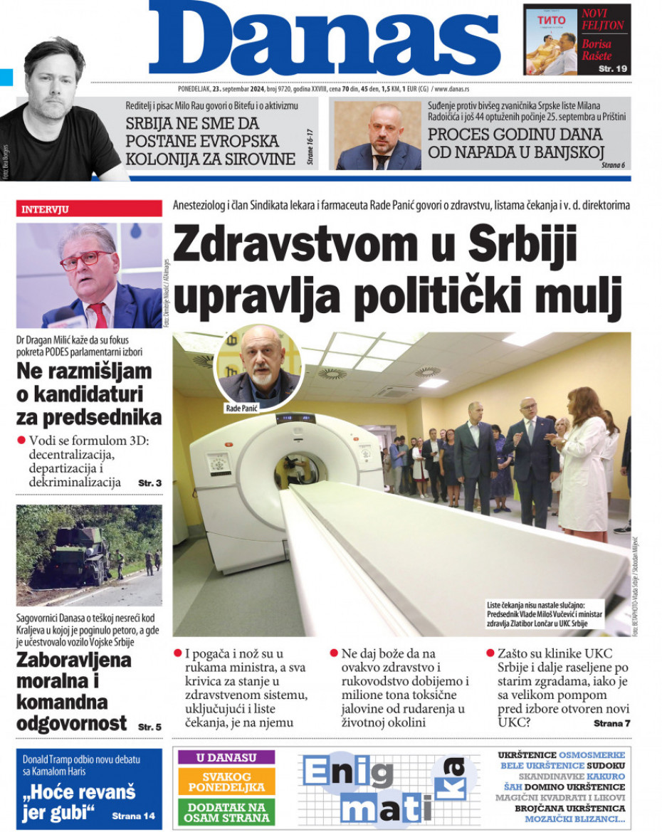 Pogledajte šta na naslovnim stranama donose dnevne novine u Srbiji u izdanju za ponedeljak, 23. septembar