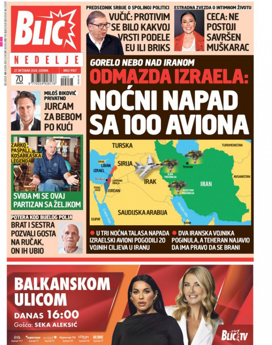 Pogledajte šta na naslovnim stranama donose dnevne novine u Srbiji u izdanju za nedelju, 27. oktobar.