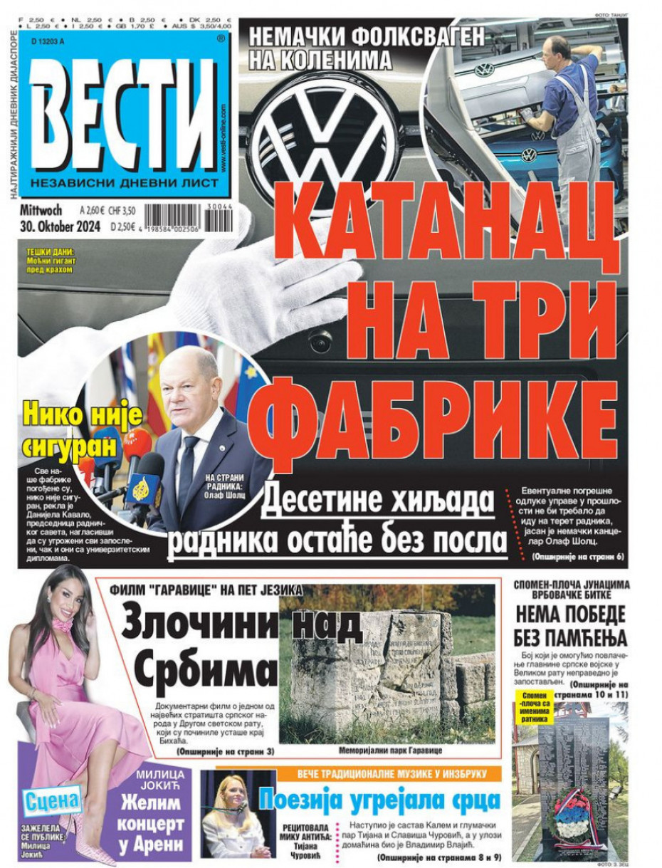Pogledajte šta na naslovnim stranama donose dnevne novine u Srbiji u izdanju za sredu, 30. oktobar