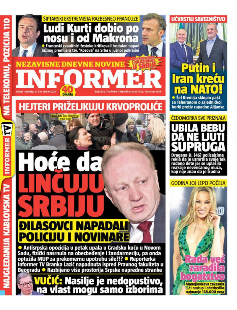 Pogledajte šta na naslovnim stranama donose dnevne novine u Srbiji u izdanju za nedelju, 19. januar.