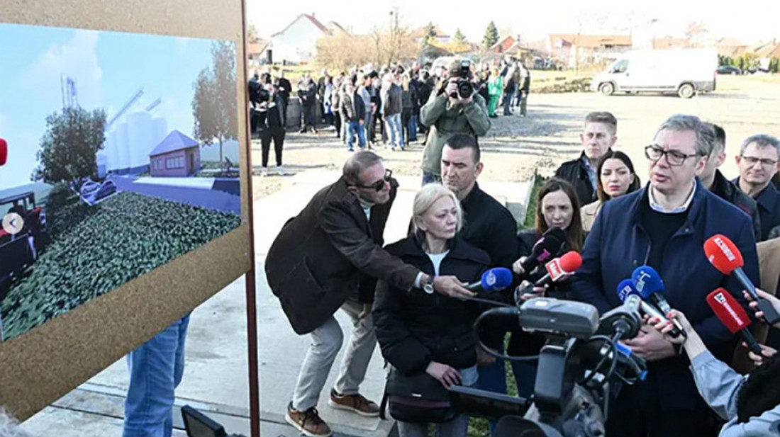 Vučića su dočekali vlasnik gazdinstva Miloš Kreculj i meštani, a prisustvuju i ministar poljoprivrede Aleksandar Martinović, ministarka privrede Adrijana Mesarović, kao i predsednica Pokrajinske vlade Maja Gojković.