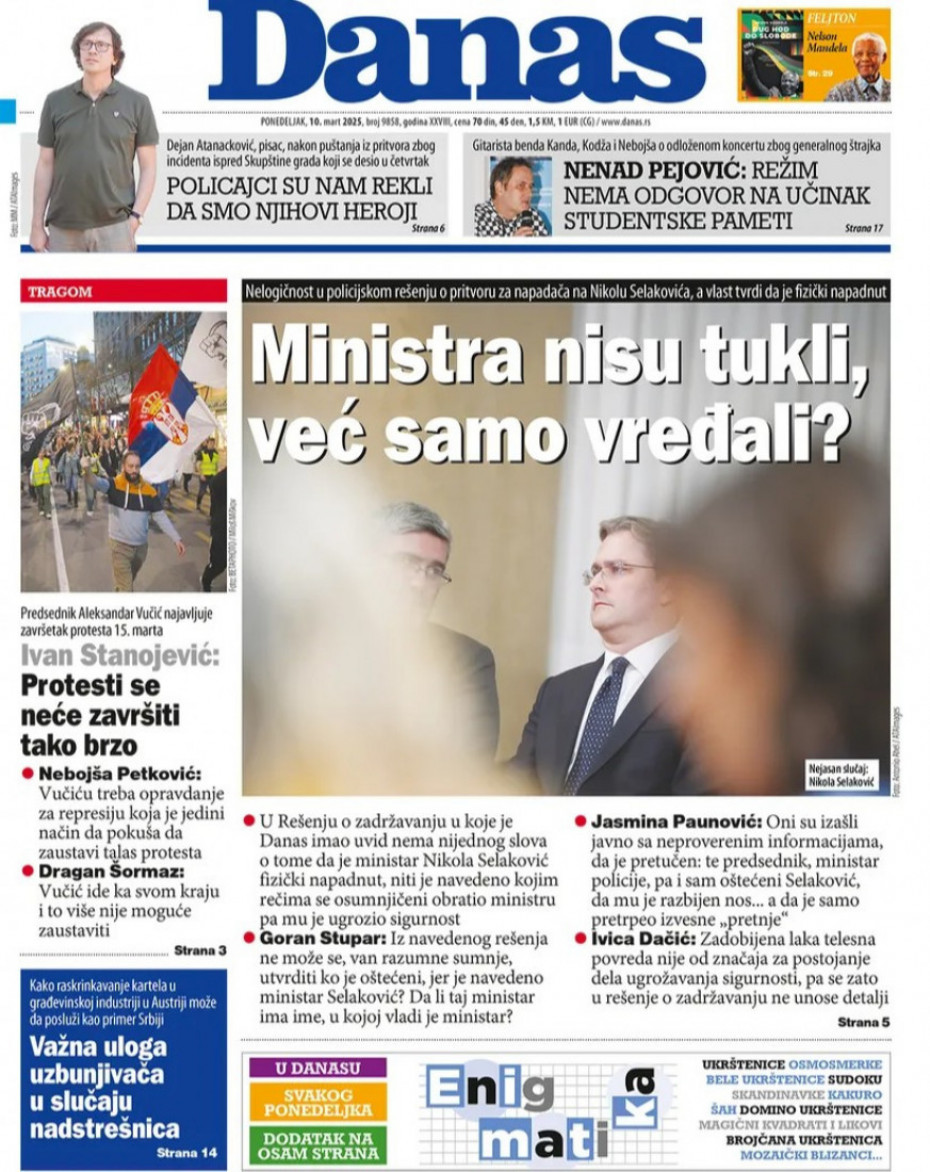 Naslovne strane dnevne štampe za ponedeljak, 10. mart