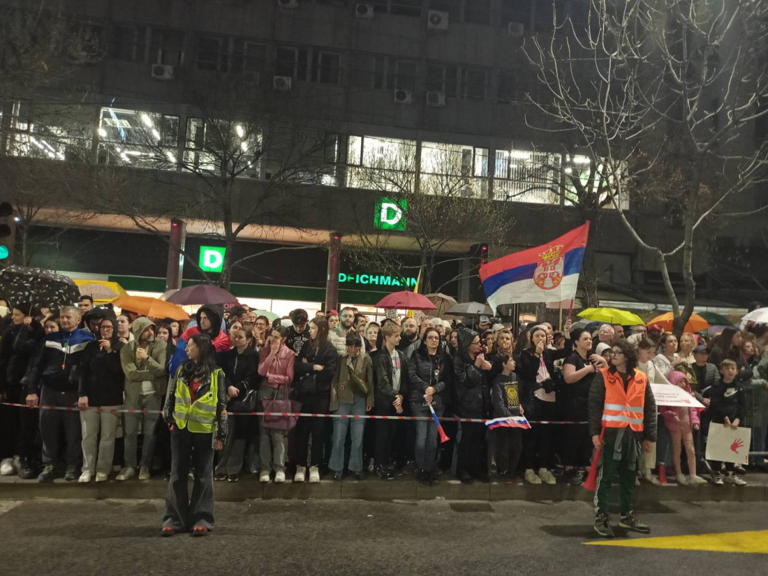 Saobraćaj od Trga Republike preko Kolarčeve ulice do Pionirskog parka obustavljen je dok se studenti spremaju za doček svojih kolega.