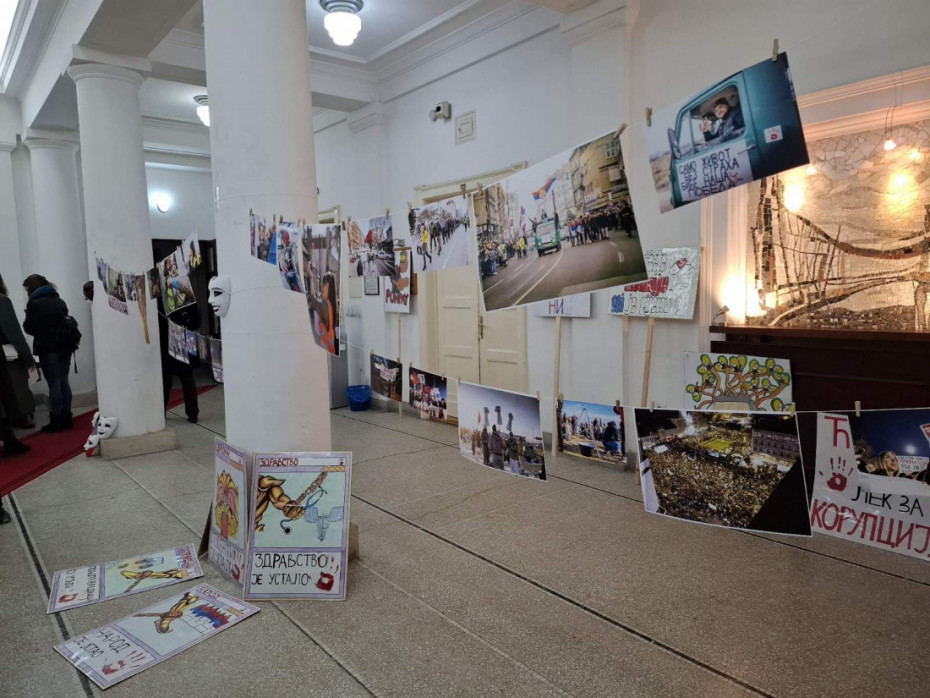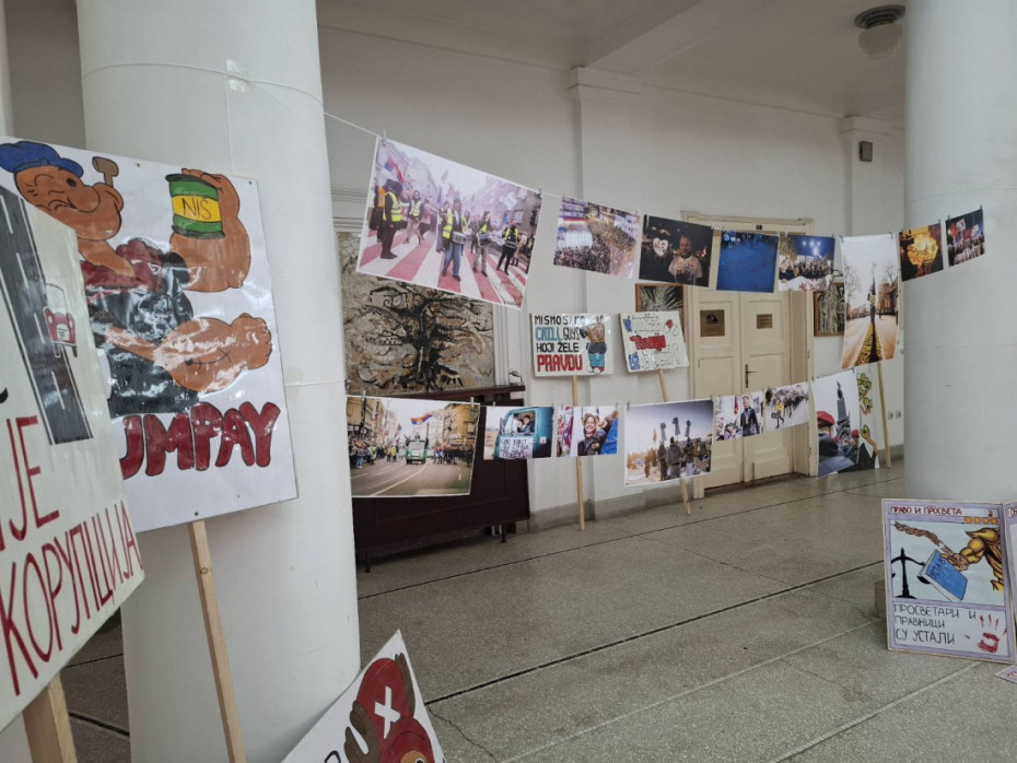U zgradi Univerziteta organizovana je i izložba povodom 100 dana blokade fakulteta u Nišu. Na postavci su predstavljeni najzanimljiviji transparenti i fotografije sa niških skupova i protesta.