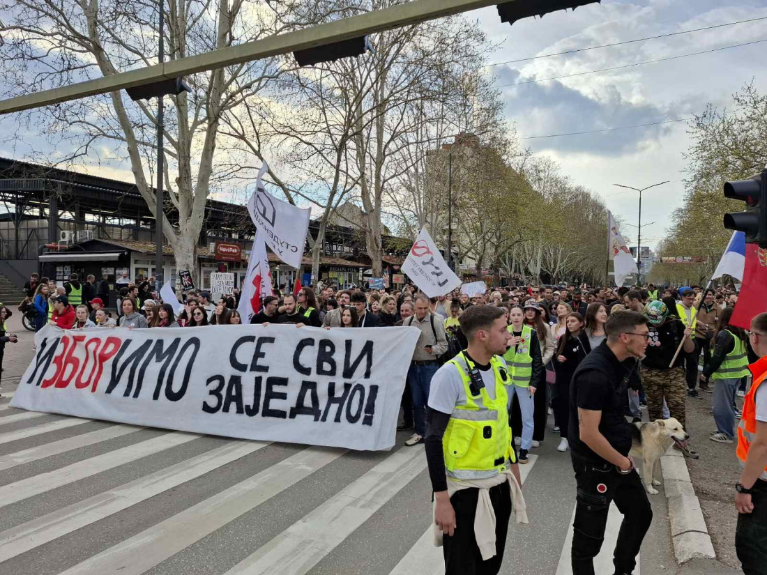 Nakon pet sati blokade, studenti i građani su se u zajedničkoj protestnoj šetnji uputili ka parku Sveti Sava, gde je organizovano završno okupljanje.
