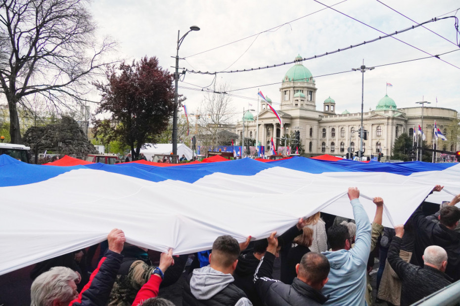 Razvijena najduža zastava u istoriji Srbije, Vučić dočekao kolonu kod Skupštine, počeo sabor "Ne damo Srbiju"