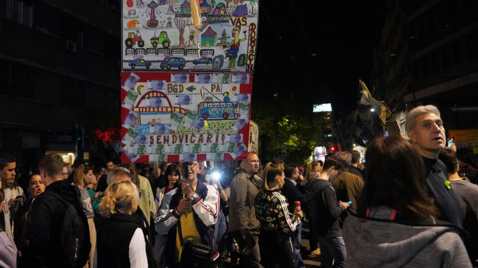 Nastavljena blokada zgrada RTS-a: Manja grupa studenata i građana skandira i pravi buku vuvuzelama