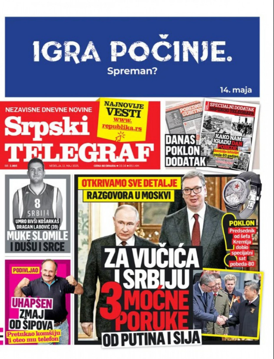 Pogledajte šta na naslovnim stranama donose dnevne novine u Srbiji u izdanju za nedelju, 11. maj